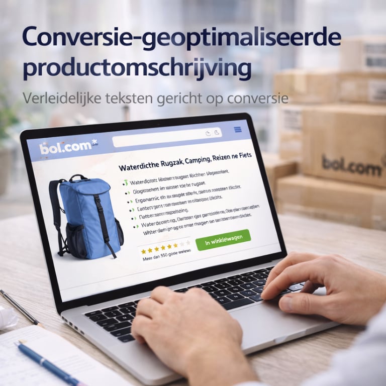 Optimaliseer je productpagina zodat je product maximaal zichtbaar wordt en beter converteert. Met een datagedreven aanpak verbeteren we titel, afbeeldingen, content en structuur van je listing, volledig afgestemd op het algoritme én het koopgedrag van klanten. Het resultaat is meer zichtbaarheid, hogere conversie en structureel meer sales uit je bestaande producten. Geen aannames, maar gerichte optimalisaties die direct impact maken op je bol.com winkel.
